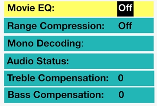 once the option is highlighted, press the seek forward or seek back button to adjust the value between -15 and +15.