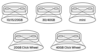 Starsze systemy SoundDock były dostarczane z modelami wkładek przedstawionymi poniżej. Są one zgodne z modelami urządzeń iPod wskazanymi na etykiecie. Etykieta znajduje się na spodzie wkładki, jak pokazano na ilustracji.
