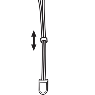 Przesuń suwak regulacyjny w górę lub w dół, aby zmniejszyć lub zwiększyć długość luźnego przewodu między lewą a prawą słuchawką.