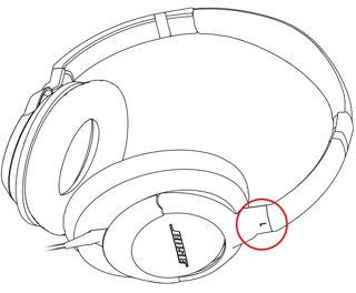 Włóż mniejszy wtyk kabla audio (2,5 mm) do gniazda w lewej muszli.